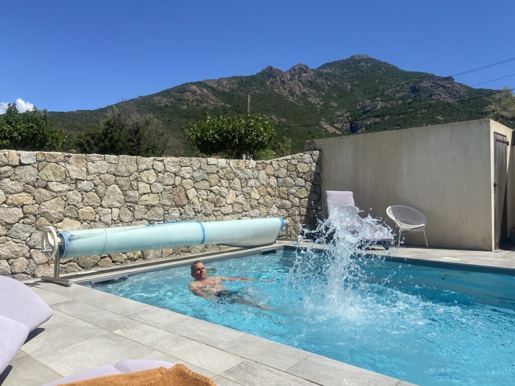 Maar ach, wat zouden we klagen? Het is schitterend hier, de zon schijnt en ons hotelletje heeft zelfs een spierverkoelend plonszwembadje.