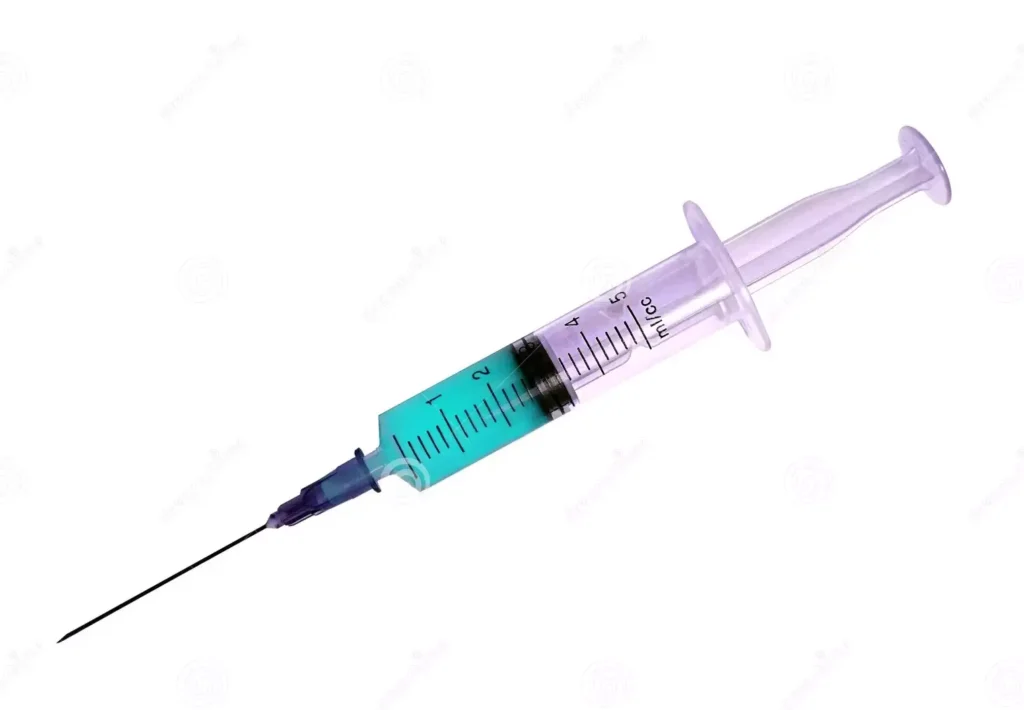 Dan volgen de injecties. Die worden in mijn buik gezet, afwisselend links en rechts. Ik stroop mijn ondershirt omhoog en ontbloot mijn buik. Die injecties worden met een mooi woord ‘subcutaan’ geplaatst, in het vetweefsel onder de huid. Dit bevordert de efficiënte opname van de medicatie in het bloed. Mijn buik is inmiddels eerder een six-vlek dan een six-pack, met bloeduitstortingen en rode vlekken van eerdere injecties. Die trekken weliswaar steeds weer weg maar worden opgevolgd door nieuwe vlekken na nieuwe injecties. Het is geen fraai gezicht.