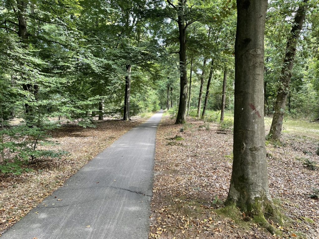 Op dinsdag fietsen we gelukkig grotendeels door Drentse bossen dus hebben we van de wind weinig last. Mooi hoor, Drenthe.